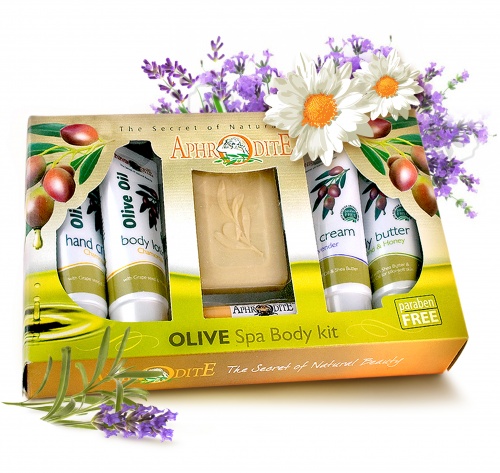 Набор для ухода за телом с оливковым маслом и ромашкой для нормальной и чувствительной кожи.