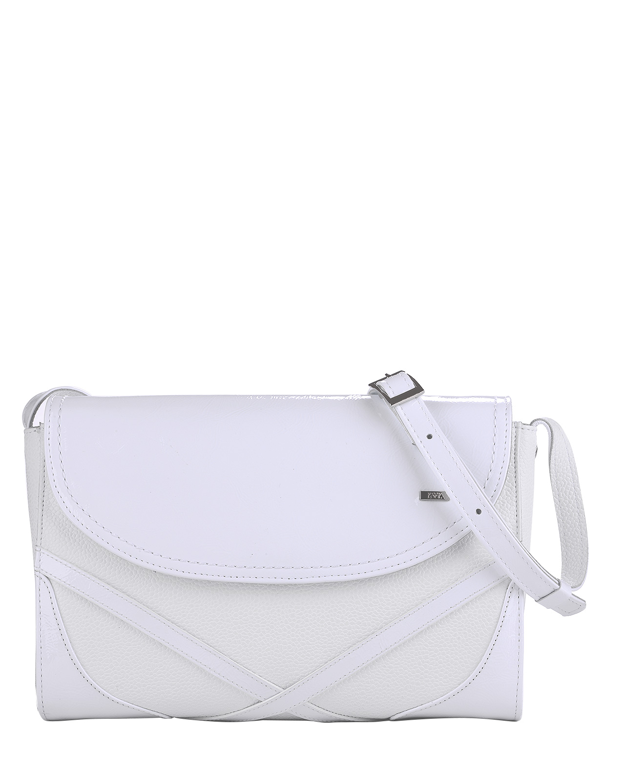 Небольшая женская сумка закрывается на молнию и клапан на магнитной кнопке. Внутри одно отделение, открытый карман для телефона и карман на молнии для документов. На задней стенке сумки карман на молнии. Длина съемного наплечного ремня регулируется.