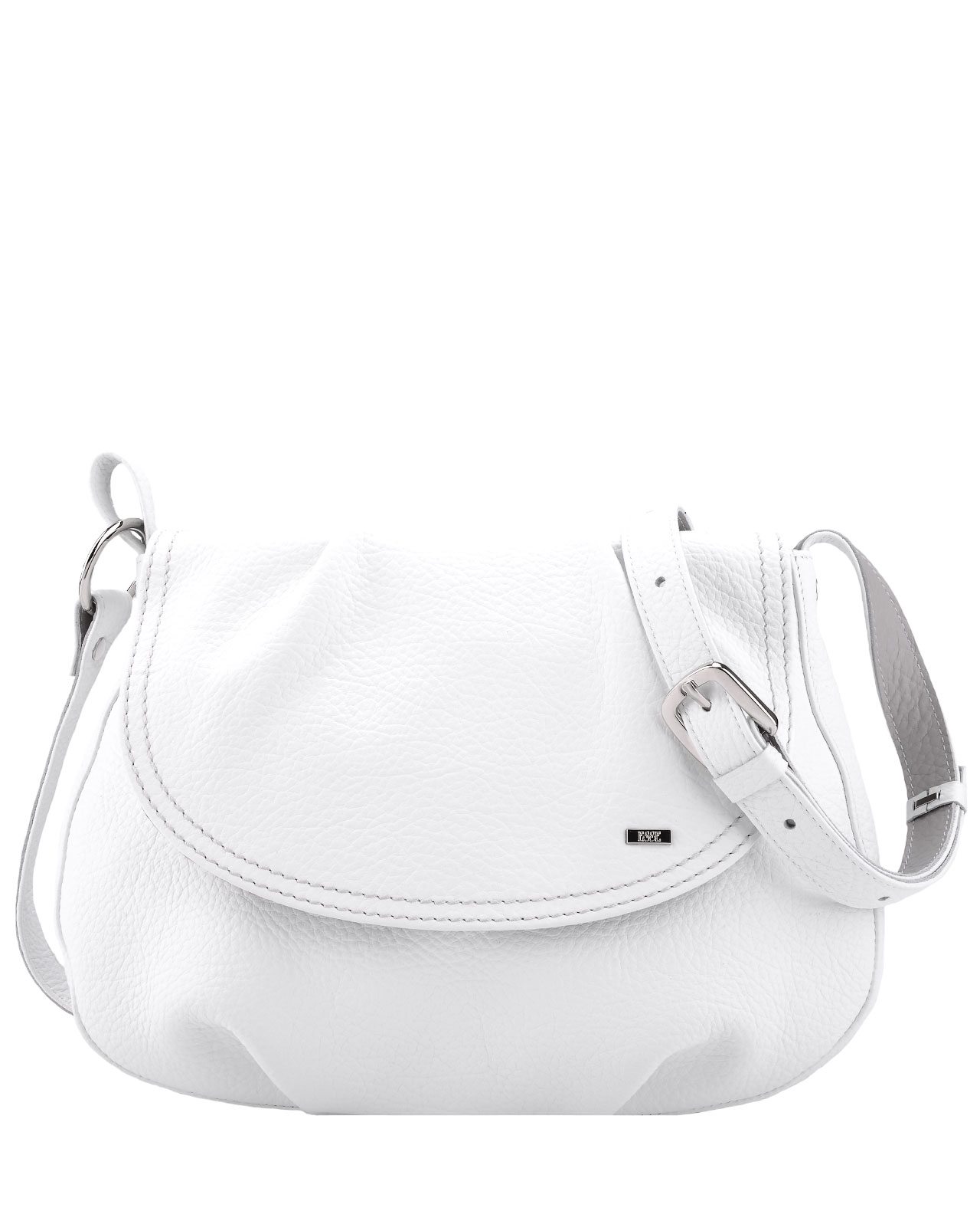 Женская сумка среднего размера с длинным наплечным ремнем. Внутри одно отделение на молнии, карман на молнии для документов и открытый карман. Сумка закрывается полукруглым клапаном на магнитной кнопке. На задней стенке сумки карман на молнии. Длина плечевого ремня регулируется.