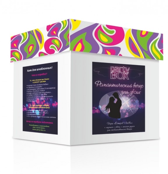 - все, что вам нужно для праздничного вечера вдвоем. Откройте коробку, поставьте музыку, зажгите свечи... Разверните карту и отправляйтесь в путешествие. Ваша цель - исследовать Остров Любви, изучить все его уголки. Узнать новое о своей половинке и вспомнить то прекрасное, что так часто теряется в будничной суете. Вы удивитесь, как много у вас прекрасного. Вас ждет вечер-загадка, вечер-тайна, вечер подарков и признаний, воспоминаний и открытий. Пойдете вы по Дороге Страсти или по Дороге Нежности?..